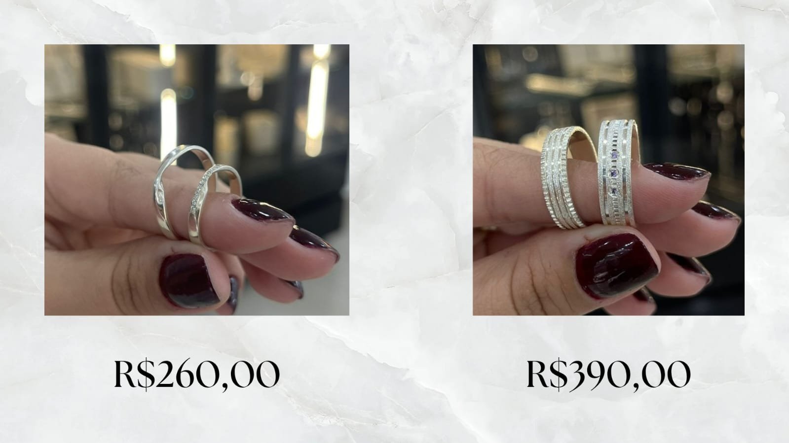 Trabalhamos com compra e venda de joias de prata, joias de ouro, alianças de namoro, alianças de noivado, alianças de casamento, anéis de prata, anéis de ouro, brincos de prata, brincos de ouro, correntes de prata masculinas, pulseiras de prata masculinas, fabricação de alianças personalizadas e reparos. Compramos ouro, venha nos visitar e faça uma avaliação grátis.